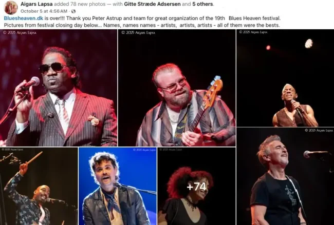 Stor tak til de tyske “Blueslover” fotografer Karo & Jürgen Achten. Der atter har lavet en helt fantastisk billedkavalkade fra Blues Heaven Vi glæder os allerede til næste gang, når de knipser og sætter billeder på Blues Heaven festivalen. Se billederne på deres “Blueslover” hjemmeside her… Fra Karos Facebook side her… Fra Jürgens Facebook side…