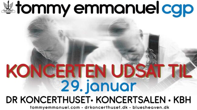 På grund af nogle brækkede ribben er Tommy Emmanuels koncert den 19. november i DR Koncerthuset blevet udsat til den 29. januar 2025.